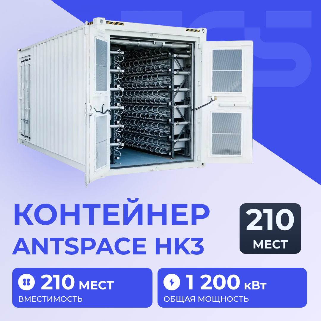 • Максимальная производительность: эффективное охлаждение обеспечивает работу оборудования на пиковой мощности 24/7 • Сокращение расходов: оптимизация энергопотребления снижает затраты на электричество • Простота эксплуатации: модульная конструкция позволяет легко устанавливать и обслуживать оборудование • Долговечность оборудования: стабильный микроклимат продлевает срок службы ASIC-майнеров, защищая их от износа • Увеличенный объем: позволяет размещать большое количество асиков • Снижение шума: гидроохлаждение работает тише воздушных аналогов Bitmain Antspace HK3 210 (V6) — это не просто контейнер, а готовое решение для промышленного майнинга. Сочетание высокой плотности размещения, энергоэффективности и надежности делает его незаменимым для крупных инвесторов и больших дата-центров. Инвестируйте в Bitmain Antspace HK3 210 (V6), чтобы оптимизировать затраты, увеличить доходность и обеспечить бесперебойную работу вашего бизнеса в любых условиях. Купить контейнер для майнинга можно на сайте TCS Mining c доставкой по всей России. Доступно размещение на нашем хостинге, а также покупка в лизинг.