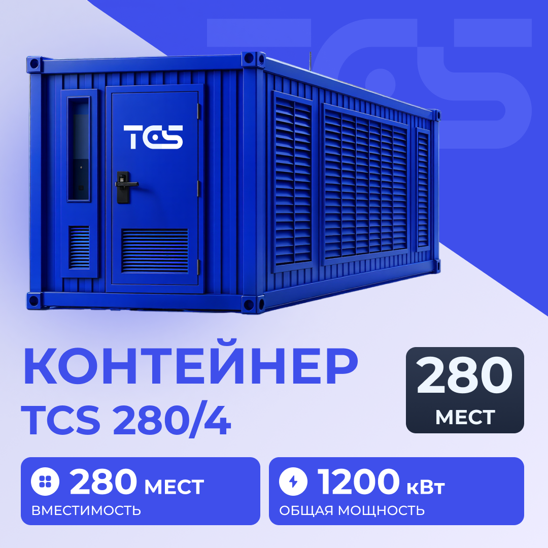 • Максимальная производительность: эффективное охлаждение обеспечивает работу оборудования на пиковой мощности 24/7 • Сокращение расходов: оптимизация энергопотребления снижает затраты на электричество • Простота эксплуатации: модульная конструкция позволяет легко устанавливать и обслуживать оборудование • Долговечность оборудования: стабильный микроклимат продлевает срок службы ASIC-майнеров, защищая их от износа • Высокая плотность: 280 мест в конфигурации с 4 рядами — оптимально для майнеров с воздушным охлаждением • Удобный доступ: 4-рядная компоновка упрощает подключение и замену устройств Контейнер TCS 280/4 — это не просто контейнер, а готовое решение для промышленного майнинга. Сочетание высокой плотности размещения, надежности и удобной 4-рядной компоновки делает его незаменимым для крупных ферм с воздушными ASIC. Инвестируйте в Контейнер TCS 280/4, чтобы оптимизировать затраты, увеличить доходность и обеспечить бесперебойную работу вашего бизнеса в любых условиях. Купить контейнер для майнинга можно на сайте TCS Mining c доставкой по всей России. Доступно размещение на нашем хостинге, а также покупка в лизинг.